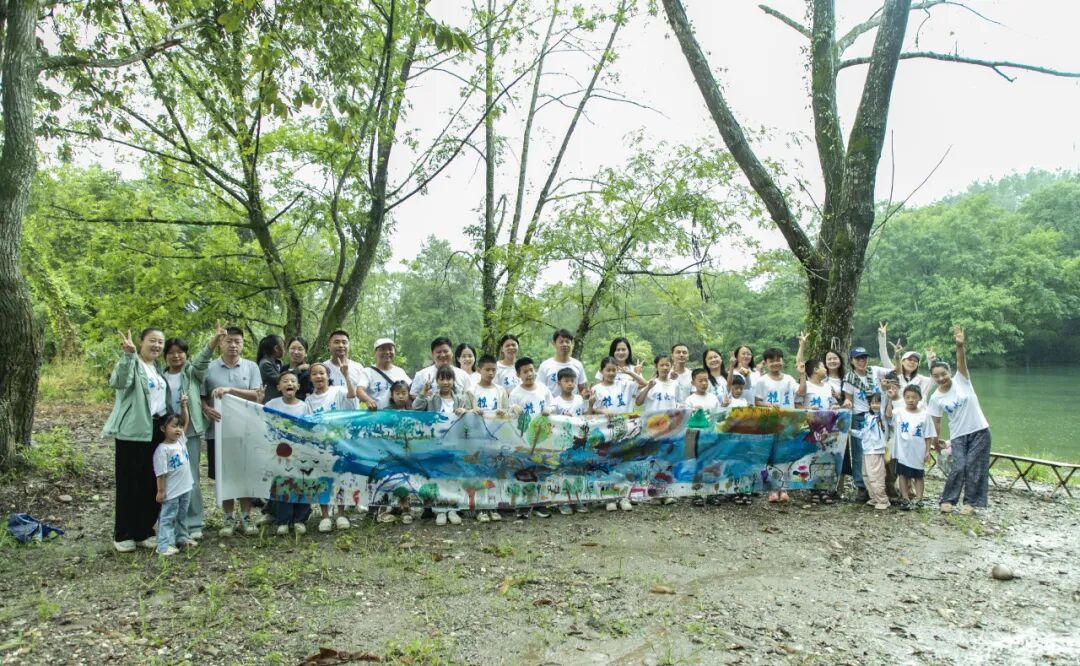 21日上午,潦河邊下起大雨,《搖籃》藝術(shù)課堂正常開講?!稉u籃》藝術(shù)課堂特邀教師寧靜把孩子們帶到河邊的橋洞下,教大家觀察河面的事物,用筆描繪看到的和想到的風(fēng)景。經(jīng)過一上午的努力,一張寫實和寫意風(fēng)格交融的6.4米丙烯畫長卷《潦河》終于完成?!稉u籃》寶寶們冒雨展開長卷,開心地與紙上的潦河及身后的潦河合影。