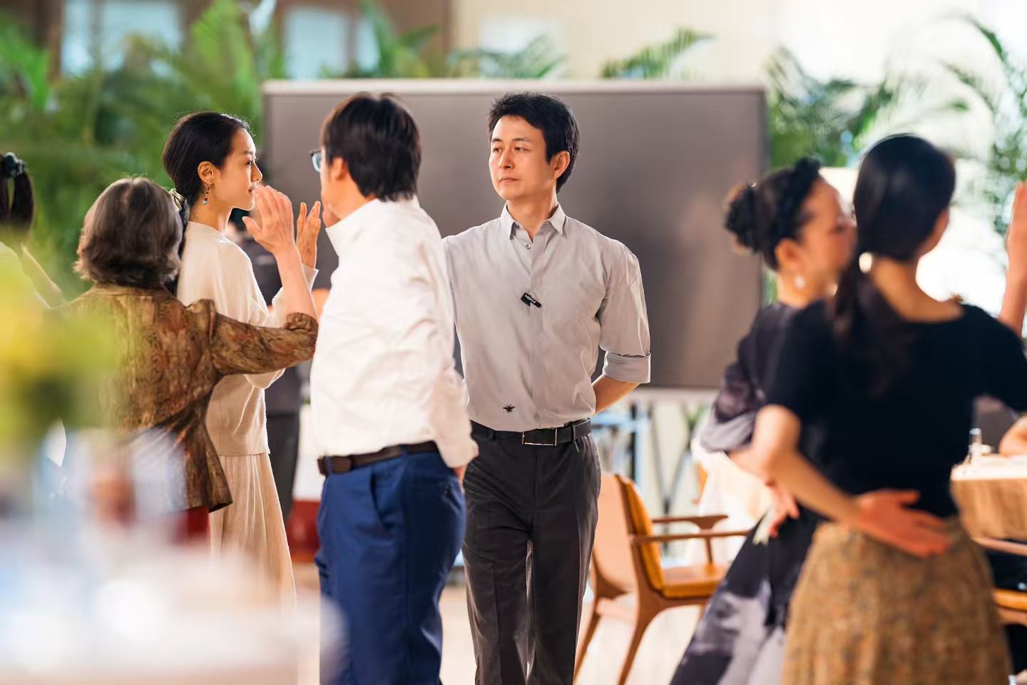 沉浸式表演結(jié)束后,話劇導(dǎo)演兼主演趙嶺為大家深入介紹國家大劇院制作話劇《傲慢與偏見》的主創(chuàng)、主演,并攜手編劇楊慧、方曉申從多角度分享話劇創(chuàng)排細(xì)節(jié)。