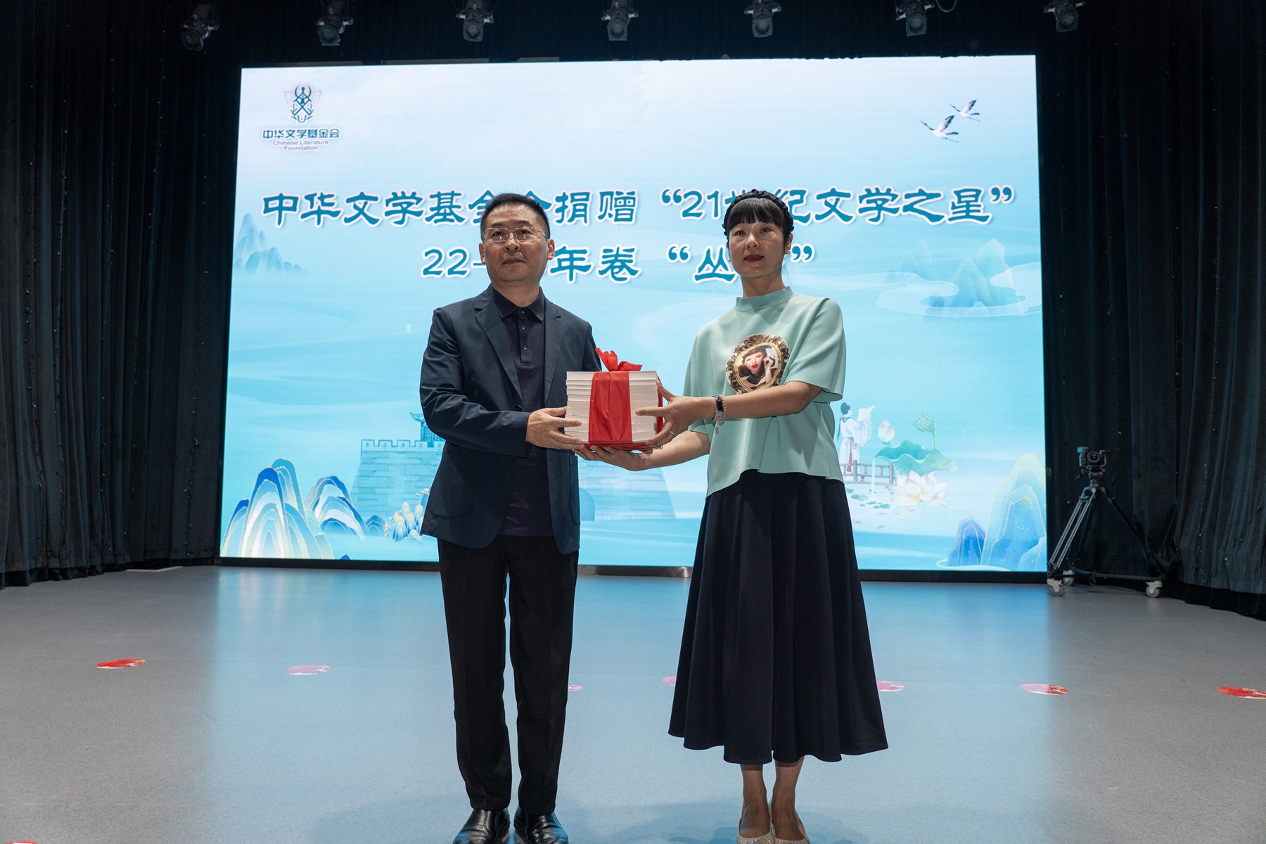 中華文學(xué)基金會秘書長安亞斌向壽縣文學(xué)藝術(shù)院捐贈“21世紀文學(xué)之星”叢書簽名本