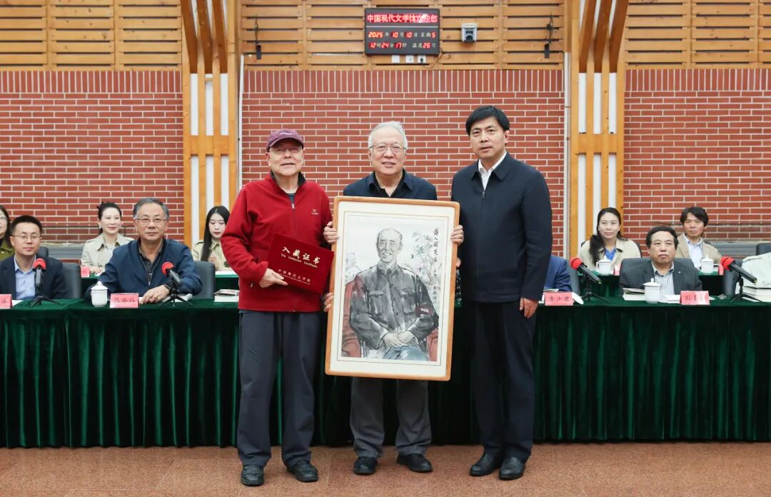 座談會上,鄭蘇伊代表臧克家親屬向中國現(xiàn)代文學(xué)館捐贈了1000余件手稿、實(shí)物,368本名家簽名贈書等珍貴文獻(xiàn)。畫家紀(jì)清遠(yuǎn)、李培禹捐贈了畫作《詩人臧克家》。中國現(xiàn)代文學(xué)館常務(wù)副館長王軍接受捐贈,并頒發(fā)入藏證書。