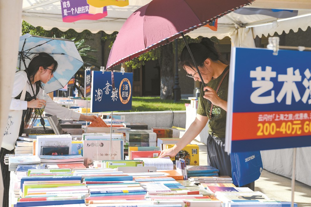 “每次‘淘書樂’舊書市集扎根所在地文化基因,都會(huì)策劃相應(yīng)的小型展覽或推出相關(guān)展陳,希望市集與地標(biāo)擦出更多有意思的火花?!鄙虾D書有限公司副總經(jīng)理程犁告訴記者,“淘書樂”舊書市集不斷迭代升級(jí),力求提升讀者體驗(yàn)和服務(wù)水平。無論是休閑區(qū)域的“吃咖啡”,還是以校區(qū)建筑群為元素定制的藏書票和套色紀(jì)念圖章,都是因地制宜的書香禮物,讓逛市集的人們更有獲得感,向讀者傳遞“舊書流通、閱讀循環(huán)、人際交流、文化傳播”的理念,也告訴更多人——閱讀可以很時(shí)尚,歷史可以很親切,古老校園可以很“好玩”。