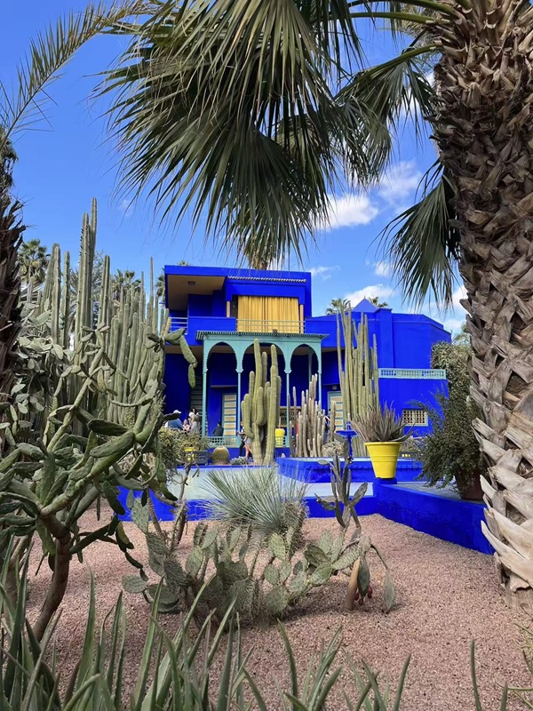 1966年,圣羅蘭和同伴貝爾熱第一次游歷摩洛哥。摩洛哥這個國家,特別是馬拉喀什這個城市,其鮮艷的色彩深深影響了圣羅蘭,為他帶去了很多靈感。當(dāng)他在馬拉喀什發(fā)現(xiàn)了馬約爾花園時,立刻“被這片馬蒂斯的色彩與大自然的色彩相融合的綠洲所吸引”。1924年,法國畫家雅克·馬約爾購得這塊土地,并建造了一座花園。1980年,圣羅蘭和貝爾熱成為了這里的新主人,對花園進行了大規(guī)模的修復(fù)工作。畫家雅克·馬約爾的工作室被改造成一個面向公眾開放的柏柏爾博物館,展出圣羅蘭和貝爾熱的藏品。自1966年起,每年6月和12月,圣羅蘭都會在馬拉喀什度過兩周時間,設(shè)計他的高定時裝系列。2008年6月1日,圣羅蘭因腦癌去世,享年71歲。貝爾熱把圣羅蘭的骨灰埋在了馬約爾花園。距離花園不遠(yuǎn)處的圣羅蘭博物館于2017年對外開放,和巴黎的圣羅蘭博物館遙相呼應(yīng),共同紀(jì)念這位偉大的藝術(shù)家。漫步在馬約爾花園,這種被命名為“馬約爾藍”的色調(diào)格外醒目,讓游客以為來到了色彩斑斕的夢幻天堂。