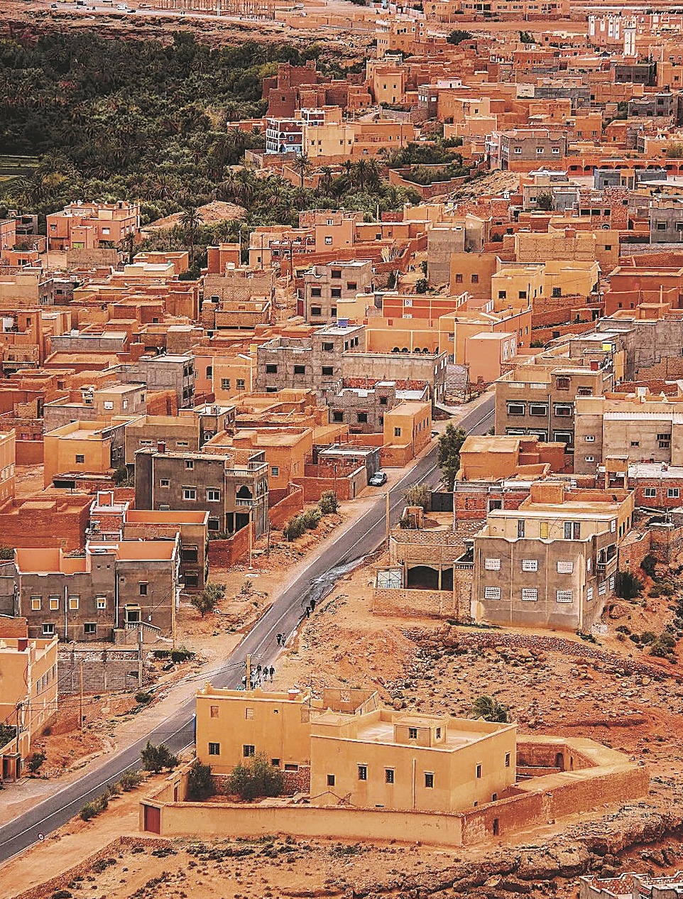 不止《卡薩布蘭卡》,很多電影都是在摩洛哥取景。前往沙漠途中經(jīng)過的阿伊特本哈杜筑壘村和瓦爾扎扎特堪稱是摩洛哥的橫店。阿伊特本哈杜筑壘村于1987年被評為世界遺產(chǎn),《阿拉伯的勞倫斯》《角斗士》《權(quán)力的游戲》等影視作品都曾在此拍攝。瓦爾扎扎特還有供游客參觀的電影城。當(dāng)然,更吸引我的還是本地人的市井生活。在瓦爾扎扎特的酒店放好行李后,我走到城鎮(zhèn)中心閑逛,廣場中心圍了一圈看表演的當(dāng)?shù)厝?。街道不算寬闊,兩邊支起了攤位,賣甘蔗汁、烤棉花糖、炸爆米花,像極了國內(nèi)縣城的春節(jié)景象。沒能在國內(nèi)過年,竟然在異國他鄉(xiāng)收獲了相似的體驗。我買了一杯牛油果奶昔,伴著粉色的晚霞在天黑前回到酒店。