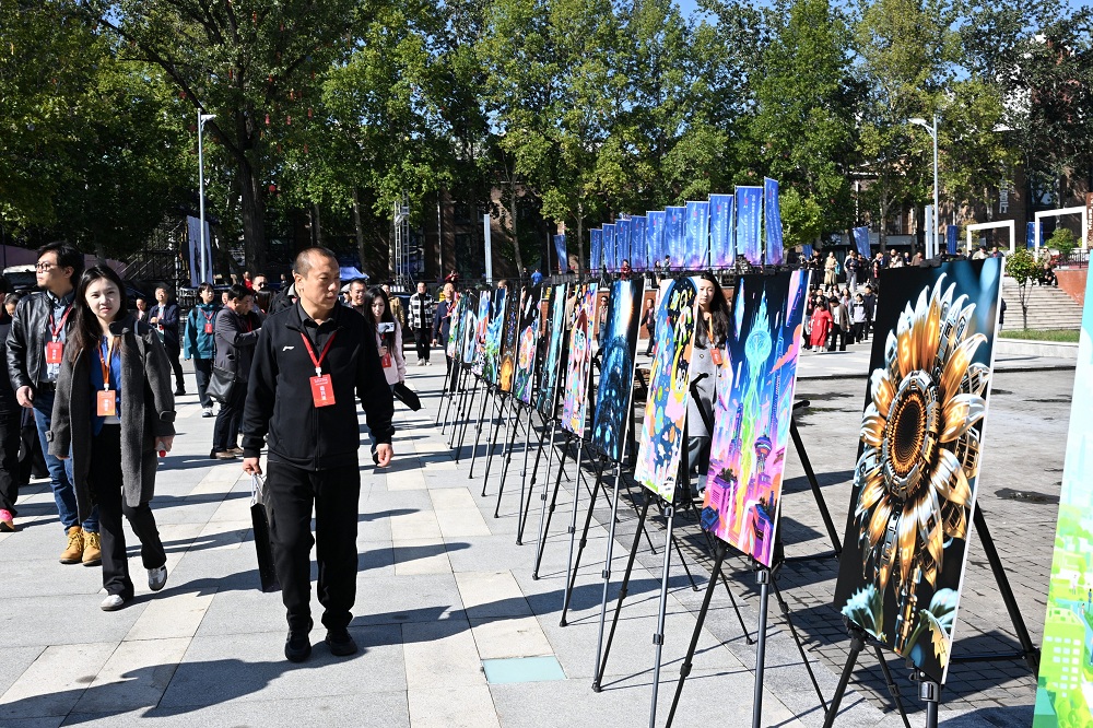 與會嘉賓參觀AI科幻作品主題展暨2025年中國流動科技館