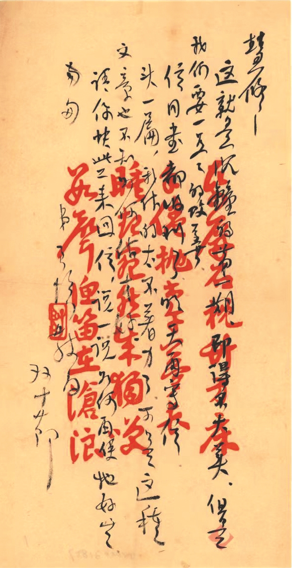 1925年10月10日,馮至(字君培)致信楊晦(字慧修)。書信內容簡短,僅103個字,墨筆行書從右向左豎行寫于彩箋之上。書信開頭便直奔主題:“這就是沉鐘的第一期”?!俺羚姟奔础冻羚姟分芸?,1925年10月10日出版。刊物出版當天,馮至便寫信告訴楊晦出版情況,并給他郵寄了期刊。