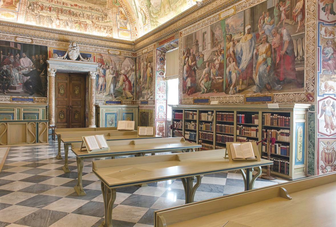 梵蒂岡是世界上國土面積最小的國家,梵蒂岡圖書館(Biblioteca Apostol-ica Vaticana)卻是世界最重要的人文科學(xué)學(xué)術(shù)圖書館之一。梵蒂岡圖書館的前身為僅供教宗和教廷內(nèi)部使用的私人藏書室。約在1450年,教皇尼古拉五世決定將其對外開放,并任命首位館長。目前其藏品包括8萬余種不同文字的寫本,160萬冊紙質(zhì)書籍(包括最早采用古登堡印刷術(shù)印行的“搖籃本”約8700部),此外還有硬幣、版畫、繪畫、照片等。其中中文藏品約7000種,1911年之前刊印抄寫的古籍有約2000種,是歐洲收藏中文古籍最多的圖書館之一。