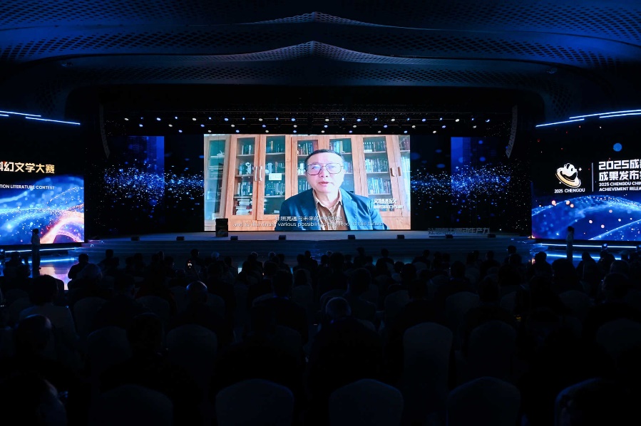 10月24日,由中國(guó)作協(xié)指導(dǎo)、成都市政府主辦的“2025成都第二屆‘天問(wèn)’華語(yǔ)科幻文學(xué)大賽成果發(fā)布會(huì)”在成都郫都區(qū)成都科幻館舉行。中華文學(xué)基金會(huì)理事長(zhǎng),中國(guó)作協(xié)原黨組成員、書(shū)記處書(shū)記施戰(zhàn)軍,中國(guó)作協(xié)副主席、四川作協(xié)主席阿來(lái),成都市委常委、宣傳部部長(zhǎng)辜學(xué)斌,中國(guó)科普作協(xié)副理事長(zhǎng)兼秘書(shū)長(zhǎng)陳玲,81屆世界科幻大會(huì)主席本·亞諾,《星球大戰(zhàn)》動(dòng)畫(huà)劇集出品人阿特爾·伊索姆、好萊塢動(dòng)畫(huà)導(dǎo)演道爾頓·格蘭特,王晉康、何夕、寶樹(shù)、楊晚晴、海漄、阿缺、段子期、武葒、顧奕等科幻作家、編劇與會(huì)。劉慈欣、羅伯特·索耶、理查德·泰勒、巴勃羅·巴斯克、弗朗西斯科·沃爾索等世界各地的科幻作家發(fā)來(lái)視頻祝賀。