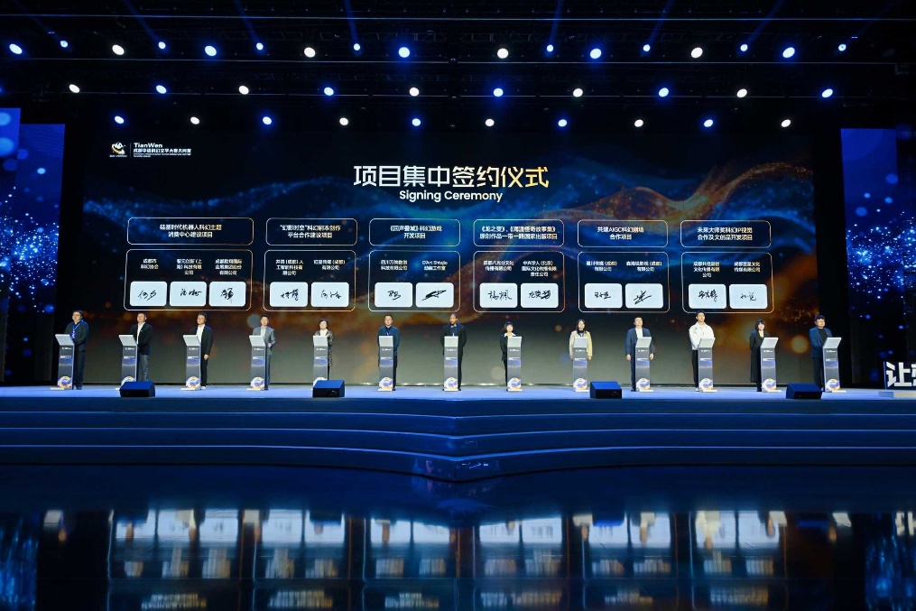 活動(dòng)最后,還舉行了硅基時(shí)代機(jī)器人科幻主題消費(fèi)中心建設(shè)、“幻影時(shí)空”科幻劇本創(chuàng)作平臺(tái)合作建設(shè)、《回聲疊城》科幻游戲開(kāi)發(fā)、《龍之變》《海漄怪奇作品集》原創(chuàng)作品一帶一路國(guó)家出版、共建AIGC科幻劇場(chǎng)合作項(xiàng)目未來(lái)大師獎(jiǎng)科幻IP視覺(jué)合作及文創(chuàng)品開(kāi)發(fā)等6個(gè)項(xiàng)目簽約儀式。
