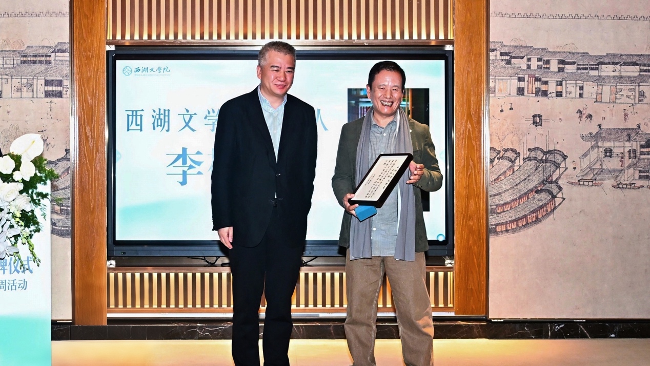浙江出版聯(lián)合集團(tuán)董事長、黨委書記程為民為李敬澤頒發(fā)西湖文學(xué)院召集人聘書