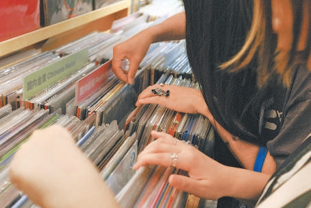 唱片愛(ài)好者在獨(dú)音唱片店選購(gòu)。