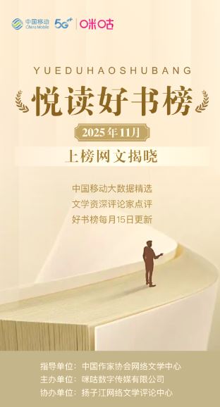 11月15日,由中國(guó)作家協(xié)會(huì)網(wǎng)絡(luò)文學(xué)中心指導(dǎo),咪咕數(shù)字傳媒有限公司主辦、揚(yáng)子江網(wǎng)絡(luò)文學(xué)評(píng)論中心協(xié)辦的“悅讀好書(shū)榜”第十一期榜單正式揭曉。