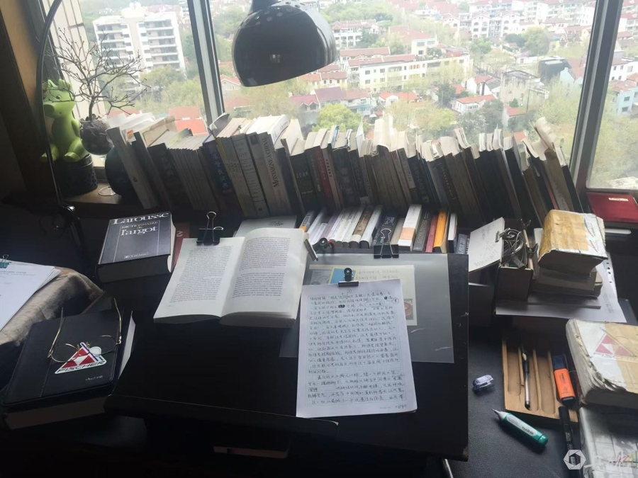 2016年,解放日報·上觀新聞記者曾登門拜訪馬振騁,靠窗案頭擺放著他正在翻譯的原稿和手寫譯稿,令記者印象深刻。