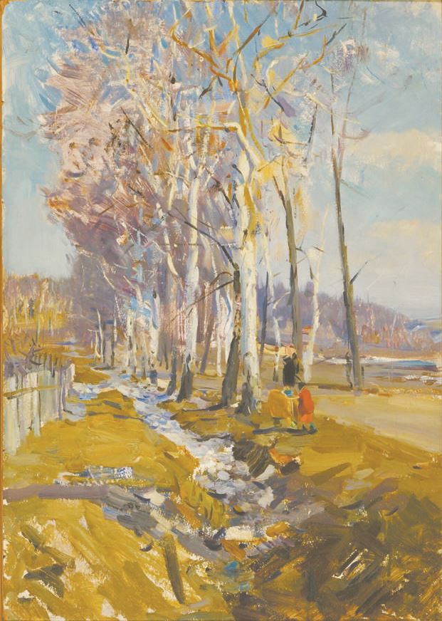 馬克西莫夫的藝術(shù)根基來自伊萬諾沃技校和莫斯科蘇里科夫美術(shù)學院的系統(tǒng)訓練;早年受教于多位承繼現(xiàn)實主義傳統(tǒng)的教師,這些學習經(jīng)歷使他非常善于表現(xiàn)人物的心理活動,為他贏得“肖像心理學家”的名聲。在這一時期,馬克西莫夫以塑造典型而富有時代感的形象見長,《拖拉機手薩沙》《院士肖像》《集體農(nóng)莊農(nóng)機手》等作品,既體現(xiàn)個體心理,也承擔著時代敘事,使他在蘇聯(lián)肖像畫領(lǐng)域獲得高度評價,確立了以人物為核心的創(chuàng)作路徑。