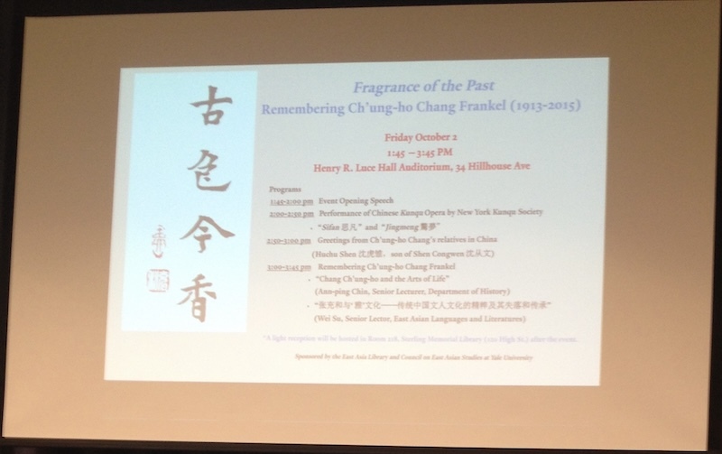 耶魯大學(xué)張充和追思會屏幕上楷書“古色今香”
