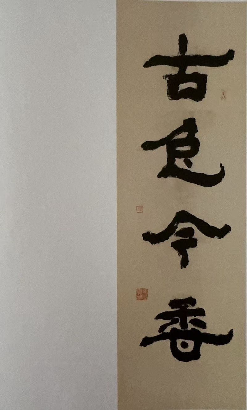 遺憾的是與這位前輩緣慳一面。2015年9月底,我作為香港北山堂基金會資助的“利榮森紀(jì)念訪問學(xué)人”赴耶魯大學(xué)美術(shù)館訪學(xué)一年。彼時,充和先生已仙逝三月有余。我于10月2日參加了耶魯為她舉辦的追思會,主題為“古色今香:紀(jì)念張充和”Fragrance of the Past: Remembering Ch’ung-ho Chang Frankel(1913—2015)。屏幕上出現(xiàn)的中文是先生的題字,帶有古意的楷書生動傳神,似乎讓人感受到隱在字后的先生身著旗袍的優(yōu)雅身影。巧合的是,耶魯美術(shù)館1988年曾舉辦“古色今香”展覽,展出居住在紐約的五位華裔畫家的作品。時任館長兼亞洲藝術(shù)部主任的密密·蓋茨(Mimi Gates)女士從先生學(xué)書,她請先生題寫圖錄中文名。這是一件隸書條幅,也是先生為展覽寫的大字招貼。兩件作品書體不同,格調(diào)有異:楷書遒勁清雋,帶著古雅的氣息;隸書渾樸開張,追求金石味。兩者都體現(xiàn)了先生深厚的書法功底。