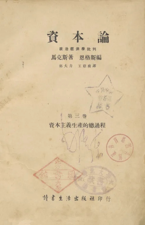 毛澤東同志贈(zèng)給北方大學(xué)的《資本論》,封面有他的鈐章。