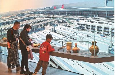 機(jī)場、地鐵站、高鐵站等交通樞紐,因其龐大的人流集散功能,也成為博物館走出館舍后選擇的重要目標(biāo)地。博物館與交通樞紐融合,成為服務(wù)通勤人群的“文化加油站”,讓人們在步履匆匆間,也能邂逅歷史文化的魅力。如2025年2月,全球首家機(jī)場在地文物展示博物館——西部機(jī)場博物館亮相西安機(jī)場T5航站樓,館內(nèi)收藏了西安咸陽國際機(jī)場建設(shè)期間考古發(fā)掘出土的121件文物。2025年8月上線的洛陽地鐵博物館主題專列,“蜜褐紅”“大漠金”“運(yùn)河青”車廂,讓三千年的河洛文化在車廂里“流動”起來。早在2024年1月,廣州鐵路博物館就將1號館第4部分“高鐵時代”的展陳優(yōu)化后,搬進(jìn)了廣州白云站候車廳,乘客可在候車間隙觀摩新中國鐵路建設(shè)成就紀(jì)念章等藏品……