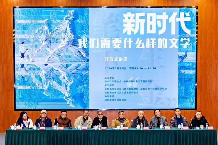 1月13日下午,由中華文學(xué)基金會、中共成都市金牛區(qū)委宣傳部聯(lián)合主辦的新時代全國文學(xué)名家座談會在成都市金牛區(qū)圖書館舉行。十余位來自全國各地的作家、詩人、文學(xué)評論家,齊聚一堂,圍繞“新時代我們究竟需要怎樣的文學(xué)”,探討了文學(xué)面臨的基本境況,共談文學(xué)與時代、人生與創(chuàng)作的種種話題,并與參加座談會的觀眾熱烈交流。座談會由詩人、學(xué)者石厲主持。