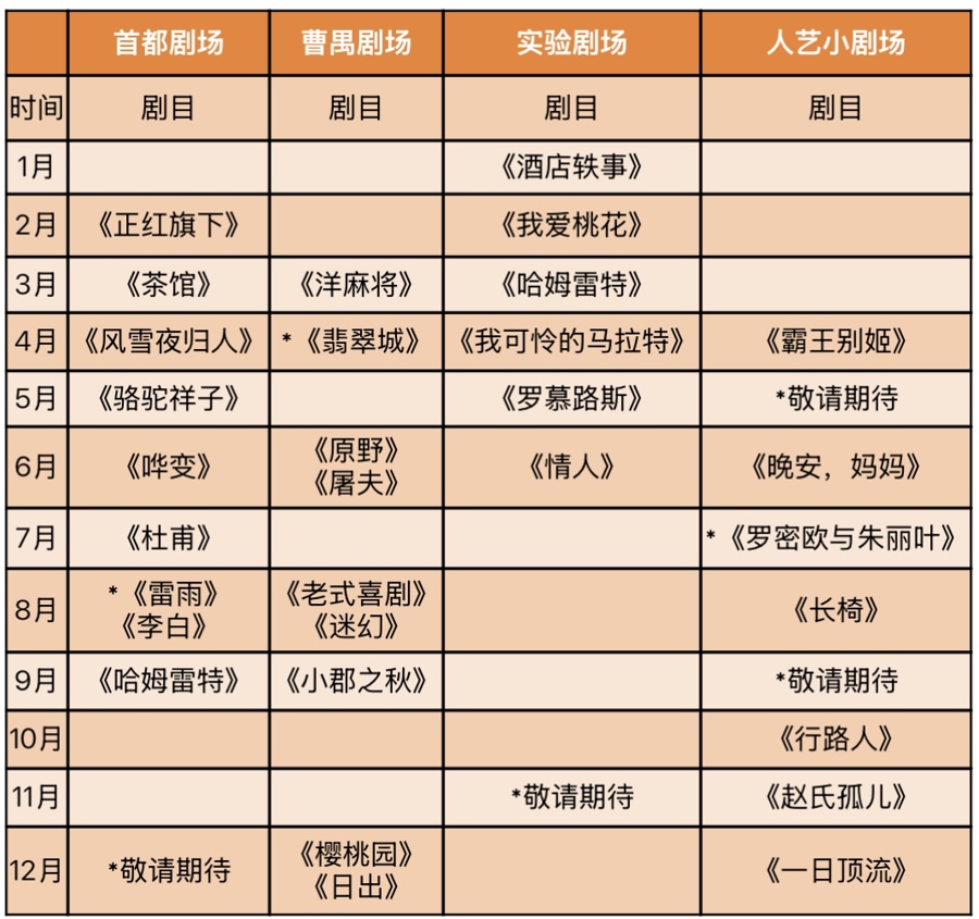 班贊導(dǎo)演的《老式喜劇》將繼續(xù)與觀眾相約“為八月干杯”,也將在本輪迎來百場演出?!缎】ぶ铩贰稒烟覉@》均將在秋冬二度上演。年末,馮遠(yuǎn)征導(dǎo)演的《日出》將以青春化的詮釋,陪伴觀眾溫暖跨年。