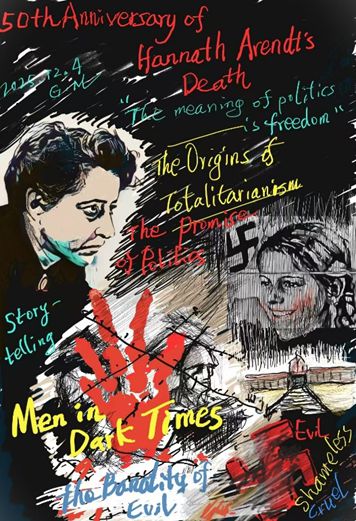 阿倫特逝世五十周年紀念:她捍衛(wèi)人性的尊嚴,手機手繪 + 拼貼,李公明作于 2025年12月4日;發(fā)表于“澎湃新聞-思想市場”“一周畫記”專欄(2025年12月8日)