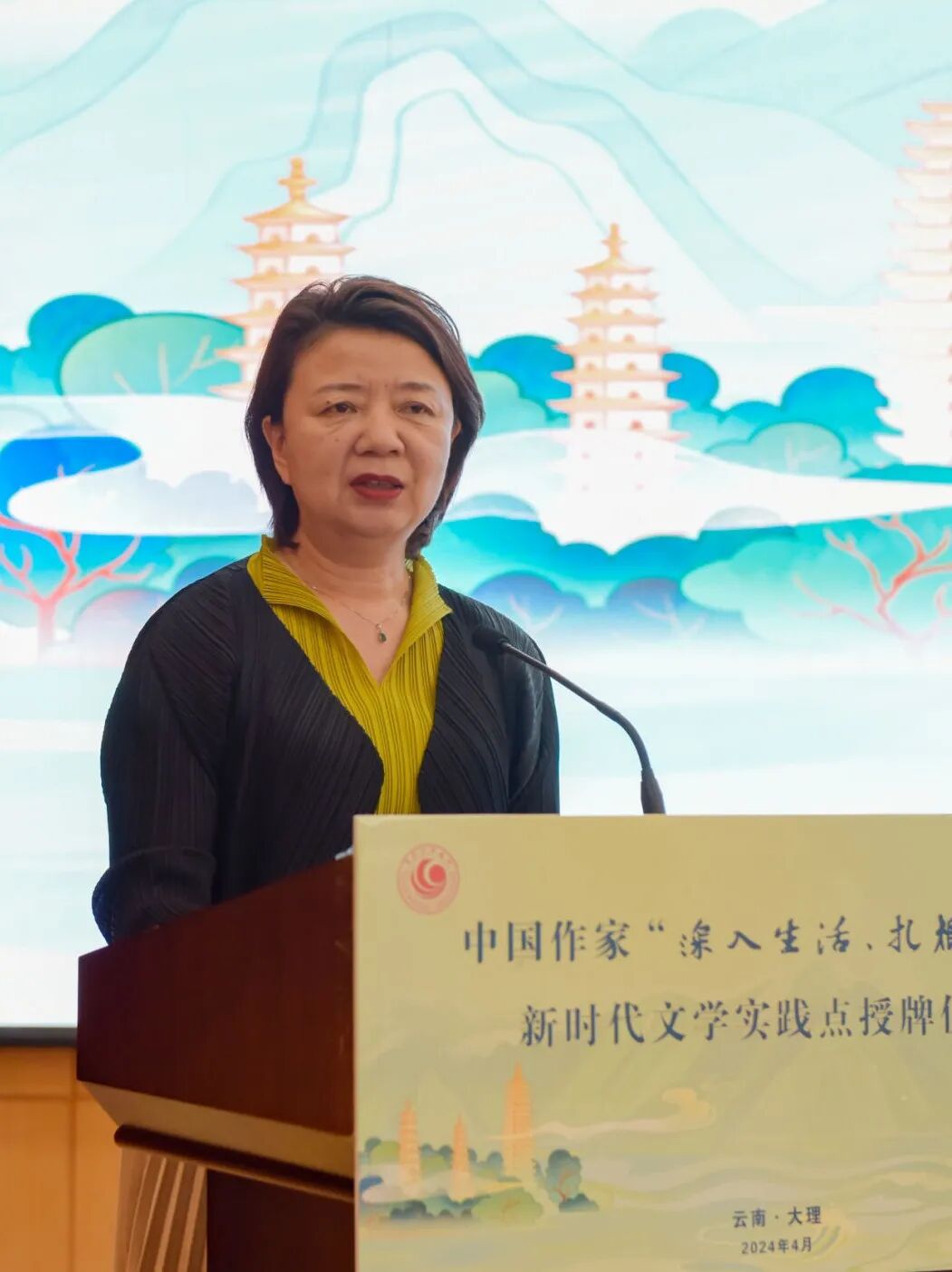包宏烈介紹了全國(guó)新時(shí)代文學(xué)實(shí)踐點(diǎn)建設(shè)情況。她指出,中國(guó)作家“深入生活、扎根人民”新時(shí)代文學(xué)實(shí)踐點(diǎn),是中國(guó)作家協(xié)會(huì)和各團(tuán)體會(huì)員單位深入貫徹落實(shí)習(xí)近平文化思想,順應(yīng)時(shí)代要求、呼應(yīng)人民期待而共同設(shè)立的。云南是文學(xué)創(chuàng)作的沃土,云南文學(xué)具有悠久的歷史和獨(dú)特的魅力,特別是黨的十八大以來,云南文學(xué)事業(yè)不斷發(fā)展繁榮,作家隊(duì)伍不斷壯大,形成了老中青三代作家齊頭并進(jìn)的態(tài)勢(shì),并在詩歌、小說、散文等領(lǐng)域創(chuàng)作成就突出。眾多作家和作品在全國(guó)乃至國(guó)際上都產(chǎn)生了廣泛的影響。大理白族自治州擁有悠久的歷史和豐富的文化底蘊(yùn),曾經(jīng)是云南政治、經(jīng)濟(jì)、文化的中心,承載了深厚的歷史文化,有著濃厚的歷史氣息和獨(dú)特的民族風(fēng)情。在大理白族自治州設(shè)立中國(guó)作家“深入生活、扎根人民”新時(shí)代文學(xué)實(shí)踐點(diǎn),有利于廣大作家在這片文化資源富集、文藝稟賦豐厚的熱土上更好地感知人民的火熱生活、時(shí)代的火熱實(shí)踐、宏闊歷史上的微觀縱深,從而寫出更多更好的符合時(shí)代要求、深受人民喜愛的精品力作,彰顯文學(xué)獨(dú)特的價(jià)值和力量。希望大理實(shí)踐點(diǎn)以習(xí)近平新時(shí)代中國(guó)特色社會(huì)主義思想為指導(dǎo),心懷“國(guó)之大者”,堅(jiān)守人民立場(chǎng),將其建成繁榮中國(guó)文學(xué)事業(yè)、推進(jìn)當(dāng)?shù)馗哔|(zhì)量發(fā)展、推進(jìn)中國(guó)式現(xiàn)代化建設(shè)的重要陣地和文學(xué)圣地。