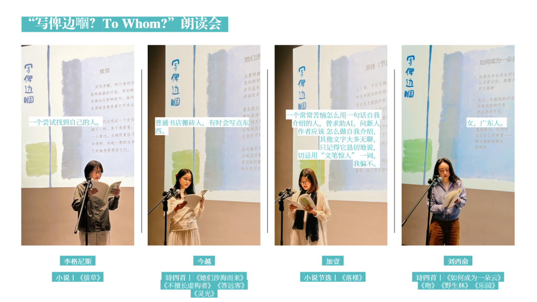 女性寫作小組的實(shí)踐,在2023年和2024年完成了第一、二期,共二十四次活動(dòng)。很多人剛來小組時(shí)完全不知如何寫,但她們?cè)诔龉ぷ鞣粫r(shí)已寫得不錯(cuò)。討論作品時(shí),我盡量不去跟她們說怎樣搭配詞語、使用意象,肢解詞語和意象的方式是我一貫反對(duì)的。不可避免,偶爾貪圖便捷,我可能也會(huì)直接告訴她們?nèi)绾问乖~語連接。但一般我只就她們的作品,告訴她們哪些句子是我認(rèn)為的詩(shī)的語言,哪些句子是我認(rèn)為的與詩(shī)矛盾的語言,可能缺少了哪樣的細(xì)節(jié)?如何去增加?細(xì)節(jié)如何去觀察?如何去使你的資料更加的翔實(shí)?促使她們主動(dòng)意識(shí)到什么是一個(gè)合理的方向,反之又是哪里。寫作最重要的是調(diào)動(dòng)個(gè)人的感知、發(fā)現(xiàn)、觀察能力,引導(dǎo)寫作最好的方式就是讓每個(gè)人找到內(nèi)心的語言。