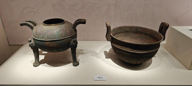 安徽淮南武王墩考古現(xiàn)場臨時展館里展出的青銅器。新華社記者余俊杰 攝