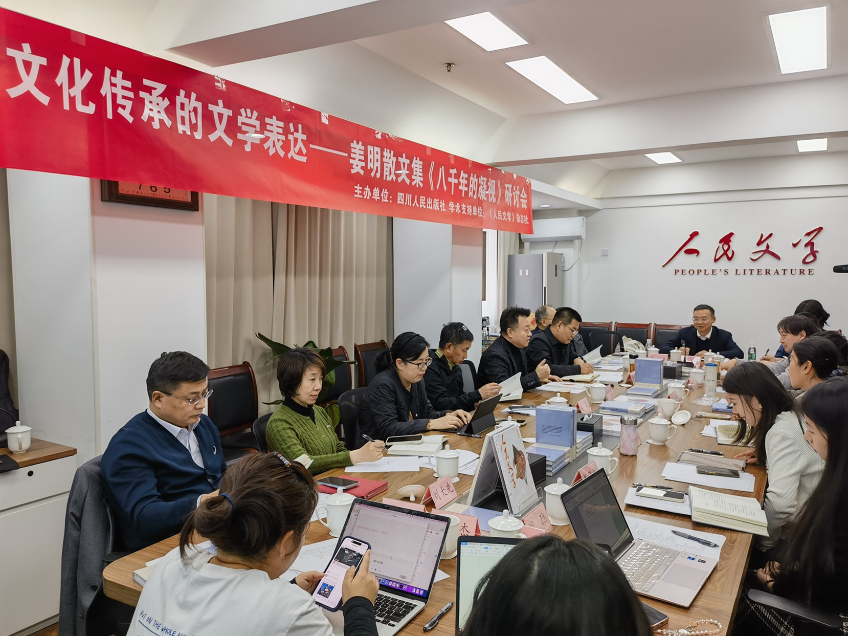 從《岳陽樓記》到余秋雨的《文化苦旅》,文化散文的傳統(tǒng)自古延續(xù)至今,這背后究竟暗含著中國知識分子怎樣的精神密碼?在文化傳承中,文學表達承擔了什么角色?2月5日下午,一場“小而美”的“文化傳承的文學表達——姜明散文集《八千年的凝視》研討會”在《人民文學》雜志社會議室舉行。中國作協(xié)黨組成員、副主席邱華棟,四川作協(xié)主席阿來,《人民文學》主編徐則臣、四川人民出版社總編輯漆秋香以及劉瓊、劉大先、楊慶祥、師力斌、徐晨亮、梁彬、王楊、趙依、教鶴然、劉汀、崔沁峰等評論家、學者、期刊主編參與研討,該書作者姜明出席研討會。會議由徐則臣主持。