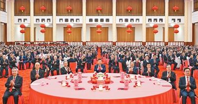 人民大會(huì)堂宴會(huì)廳燈光璀璨、喜氣洋洋,各界人士2000多人歡聚一堂、共迎佳節(jié),現(xiàn)場洋溢著歡樂祥和的節(jié)日氣氛。