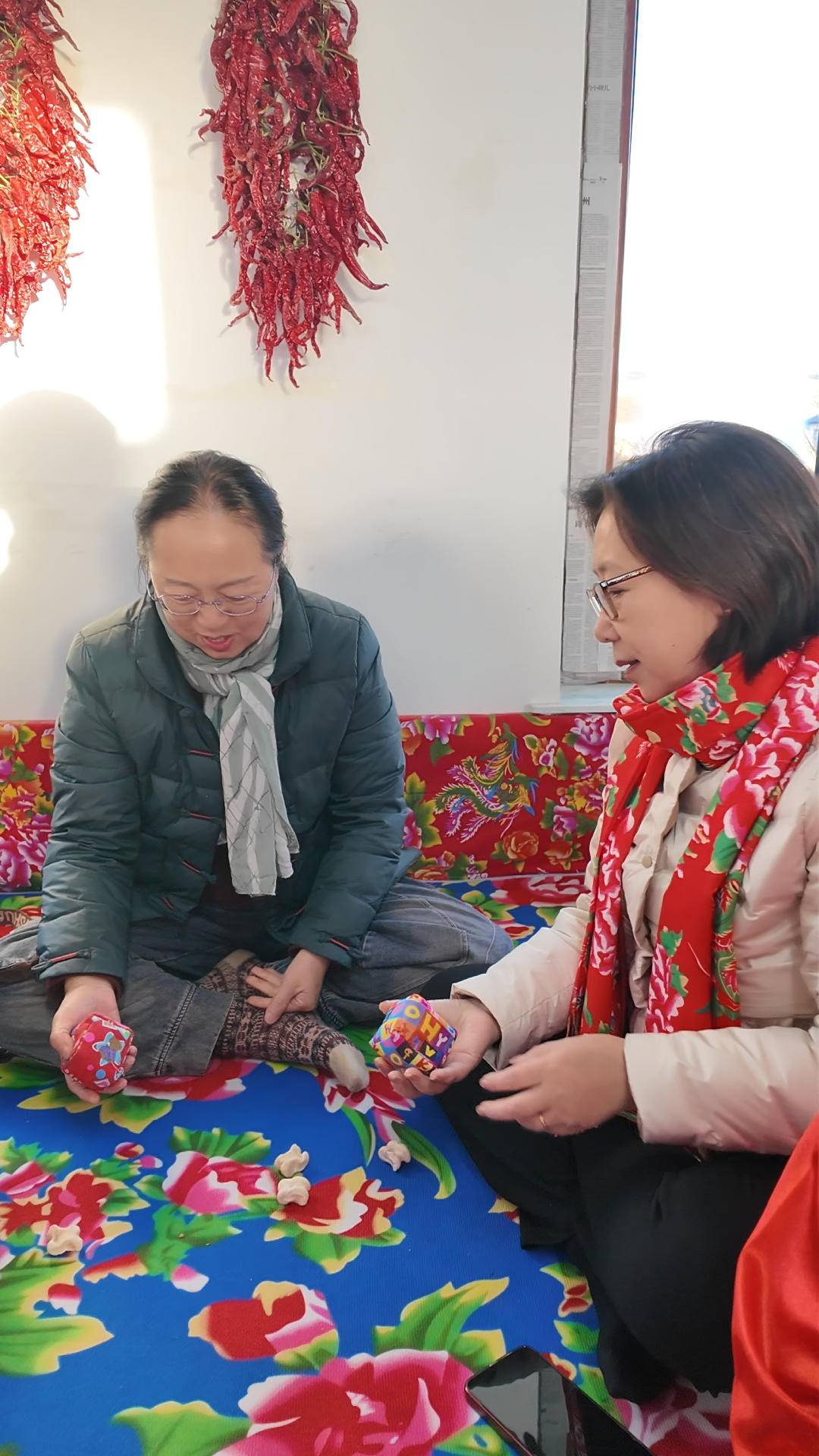 全國少數(shù)民族文學創(chuàng)作“駿馬獎”獲得者蘇蘭朵在土炕上“歘嘎拉哈”。